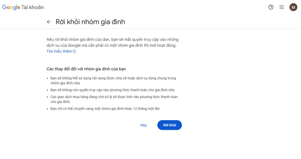 Kéo xuống dưới cùng chọn “Rời khỏi nhóm gia đình”